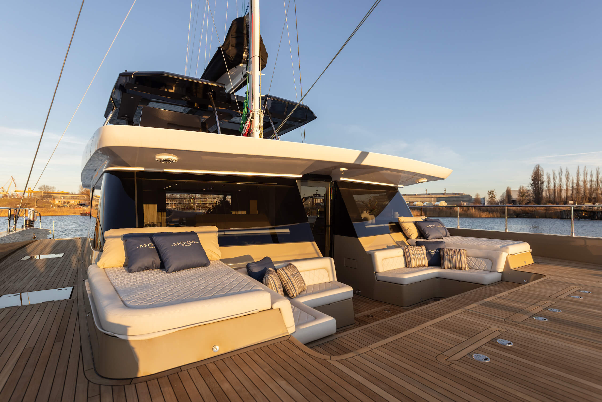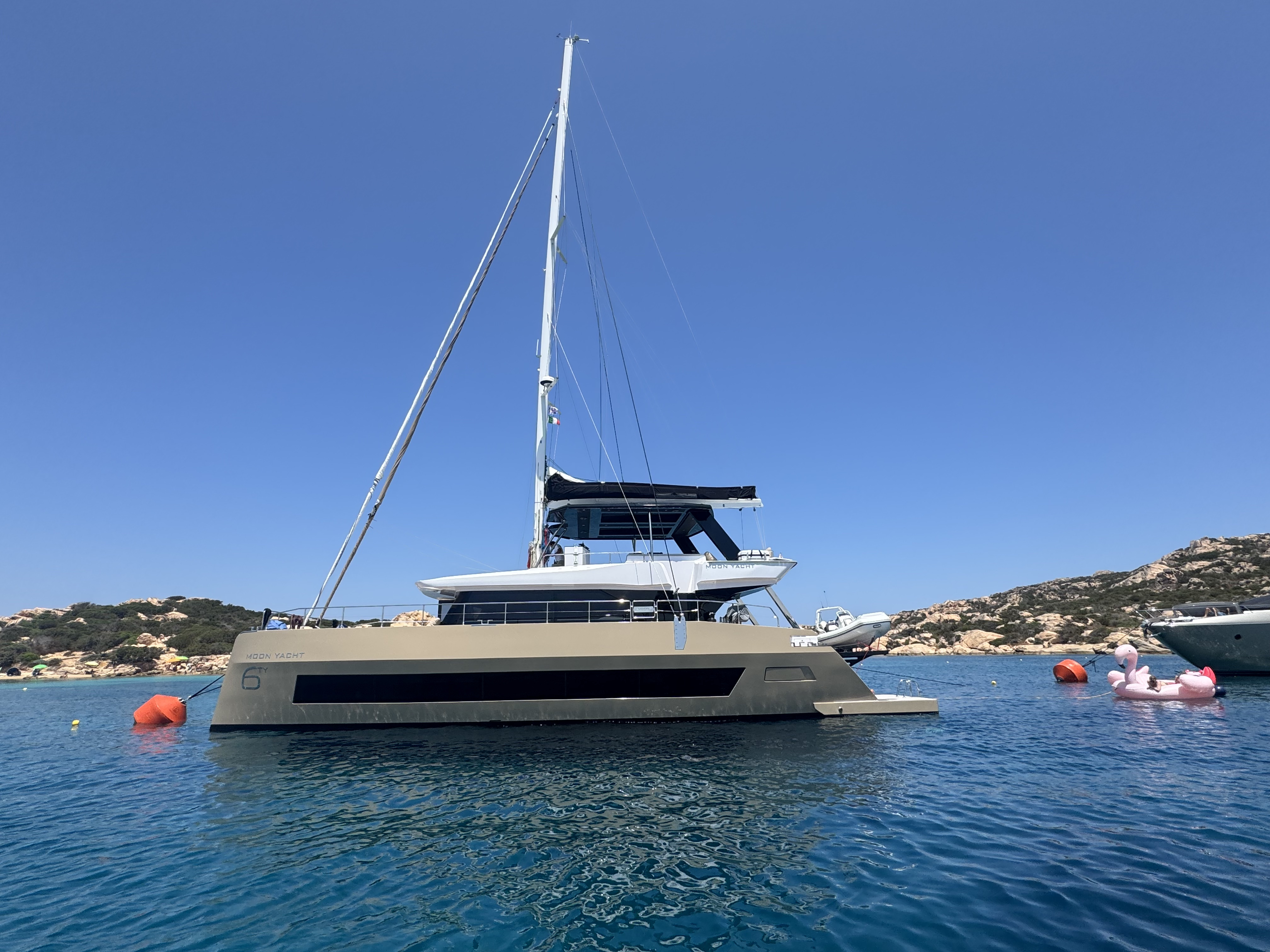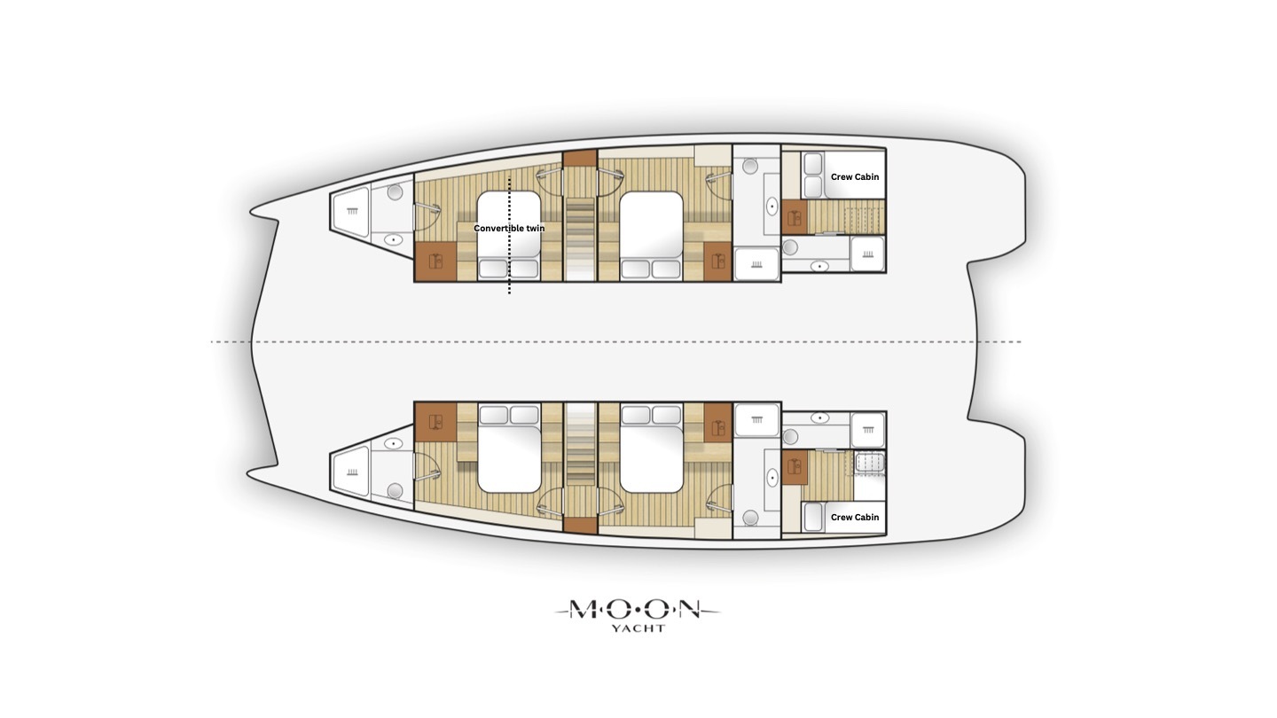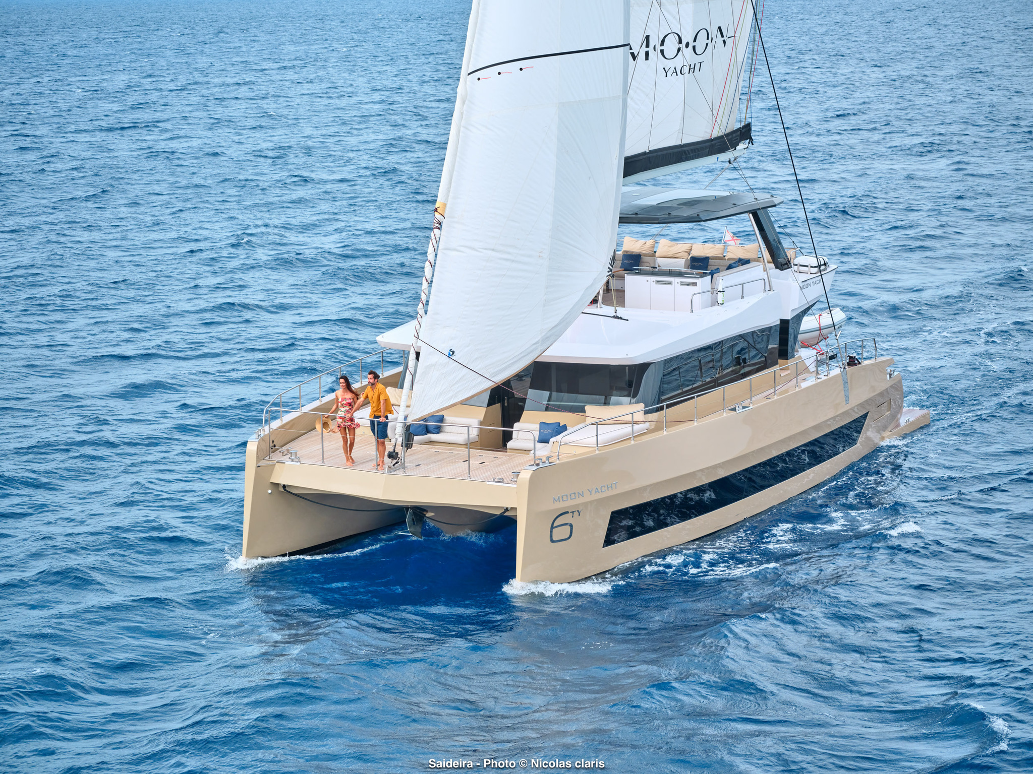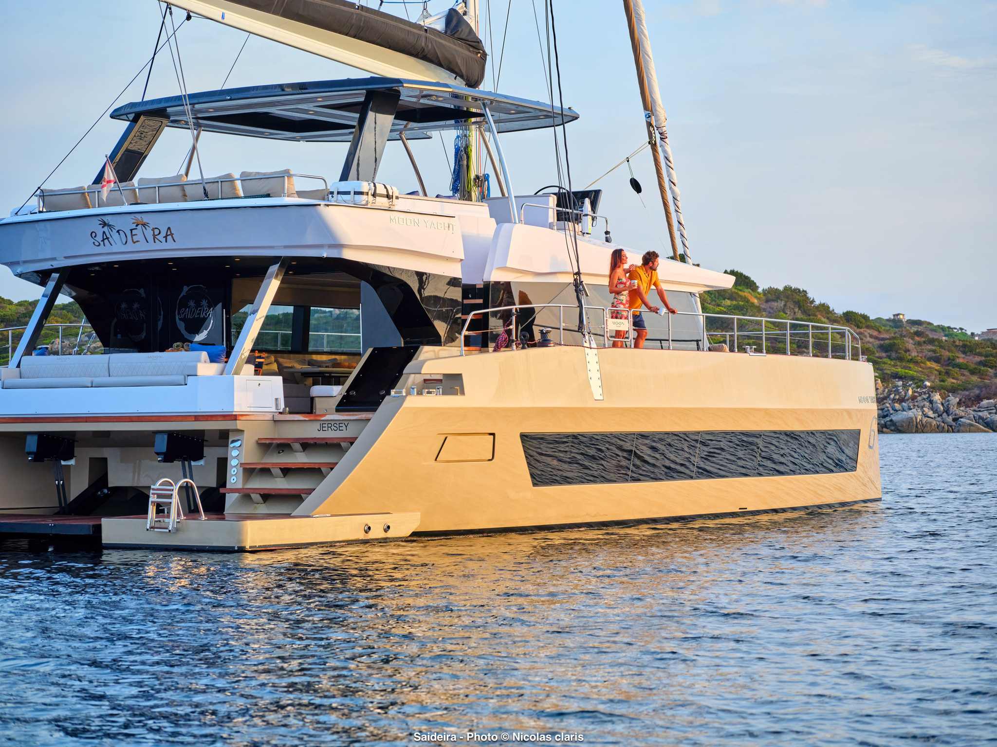 Saideira is a new, best-in-class 63'/19m Moon Yacht sailing catamaran available for luxury crewed charter in the Caribbean from December 2025 and the Mediterranean from June 2026. This yacht features four ensuite guest cabins and four spacious living areas to host guests in modern comfort. Saideira is equipped with the latest sailing gear, battery technology, and water toys to maximize your cruising experience. Your professional crew of 3 is dedicated to delighting you both onboard and on shore.