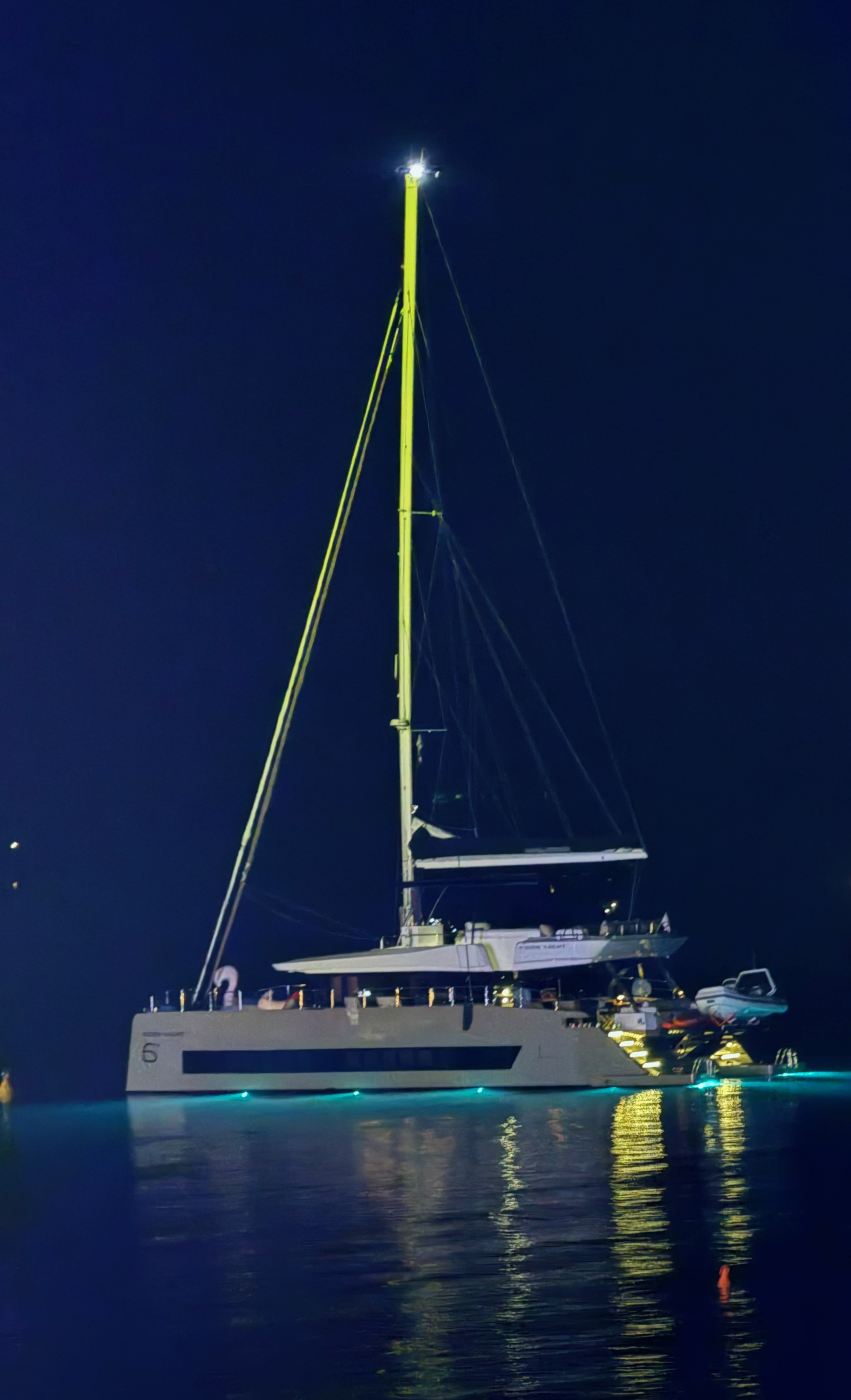 Customize a luxury crewed charter on 2025's newest 63' sailing catamaran.